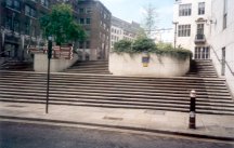Lost ground St. Michael Bassishaw, Basinghall Street. Church demolished c1900, and ground presumably cleared then. Site marked with a plaque. Still heavily used by 1841. Two good trees. Paved and added to the public footway, but still traceable. |