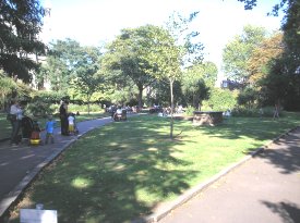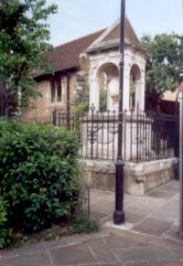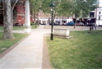 Old Burial-ground, King's Road. Laid out as a not especially exciting open space called Dovehouse Green. Burial place of Cipriani, The Italian painter and engraver, and the botanist John Martyn, who introduced peppermint into pharmacy. ¾ acre. Given to the parish of Chelsea by Sir Hans Sloane, consecrated in 1736, and enlarged in 1790. A mortuary has been built in it. It is laid out as a garden for the use of the inmates of the adjoining workhouse. Fragments of an old chapel and graveyard have been found here. (Holmes) |