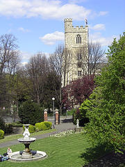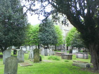 on Burial grounds by Brian Fisk. All Saints Churchyard. In Fulham High Street. This has now been turned into a model garden graveyard with trees, shrubs, the adjacent river and Bishops Park. A number of 18th and 19thc tombs and a good set of Bishops of London. Two acres or more. This is kept open during the summer months, and has seats in it, but the gravestones have not been moved, nor has the ground been handed over to any public authority for maintenance. It is neatly kept. No new graves are dug in it, but where the rights can be proved certain old vaults are still occasionally used. (Holmes) |