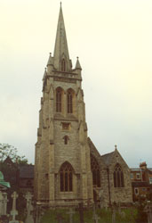 St. John's Churchyard, Walham Green. Opened 1828. A melancholy grassed area with a few marginal stones on the edge of the main road. Too small to escape its surroundings ½ acre. There arc only a few tombstones on the north side of the church and none on the south side, and the ground is closed and appears neglected. (Holmes) |