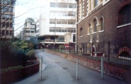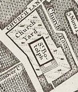 Lost grounds Holy Trinity, Minories. On the site of the Abbey of the Minories, a convent. Became a parish after the dissolution of the monasteries. Church closed 1899, Destroyed by bombing 1941.At the bend in the road in Clare Street. Now built on - no trace. |