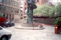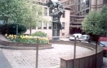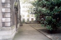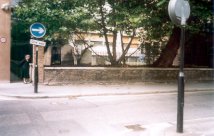 Bridewell Burial-ground. Now still open ground off Dorset Rise, forming the entrance courtyard and parking area for an office block. The area has won various awards for its planting, sculpture, etc. This is about 900 square yards in size; and is at the corner of Tudor and Dorset Streets. It was the burial-ground of the hospital, which has been removed. It is now a very untidy yard, boarded up with a rough advertisement hoarding, in the occupation of H. S. Foster, builder, 7, Tudor Street. It would make a good public playground. (Holmes) |