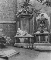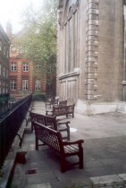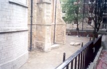 grounds St. Bride's Churchyard, Fleet Street. Quite an extensive ground around the church - tidy but dull. St Brides crypt (excavated post war) is the burial place of Samuel Pepys' brother Tom - but not of Pepys himself, as stated in The London Compendium by Ed Glinert (Penguin 2003). Pepys is buried in St Olave's Hart Street. The Compendium also tells us that he was buried at St Olave's, so presumably the compiler thinks there were two Pepys. Also in the crypt was Samuel Richardson, whose named coffin was discovered in 1993 during archaeological work. There is a fascinating article on the discovery and pathology of Richardson's remains in Current Archaeology issue 190 (February 2004) The crypt is now a museum containing, amongst other things, an iron coffin. |
