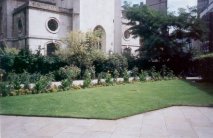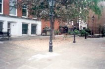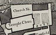 The Temple Churchyard. Raised, paved area to the north of the church with vaults beneath. Horwood shows the garden to the East of the church as 'churchyard'. Burial place of Oliver Goldsmith. Partly public thoroughfare, partly closed. (Holmes) |