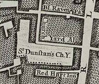 Bride's Plague Pit, Dorset Rise Location uncertain, unless it was the Bridewell ground (see below). Additional ground for St. Dunstan’s in the West. Opened 1625, possibly as a plague ground. Presumably this was the only ground for the parish after the rebuilding of the church in 1829.Some tombstones still in situ, but neglected looking. In Fetter Lane. Asphalted and used as a playground for the Greystoke Place Board School. Some tombstones remain in an enclosure at the edge. 4,750 square feet in area. (Holmes) |