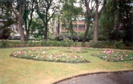 Hampstead Road. In use from around 1780 - 1853 as an extra-parochial ground for St James Piccadilly. Quite an extensive area, now with tennis courts and a children's playground. Rather gloomy. Gravestones around the edge, some in the herringbone pattern described above - a speciality of this part of the London Borough of Camden. The improvements mentioned by Holmes were the resiting of Cardington Street, probably due to the enlargement of Euston Station, during the 1870s or 80s. This belongs to the parish of St. James, Piccadilly. It was laid out as a public garden in 1887, and is maintained by the St. Pancras Vestry, a large slice at the east end having been taken off for public improvements. The remaining portion measures about 3 acres. |