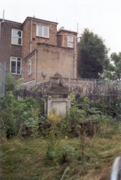 St. Pancras Burial-ground, Pancras Road. St. Giles in the Fields Burial-ground, Pancras Road. All one open space, though it is fairly clear which part was which. The St Giles additional ground was opened in the 1780s, though not much loved by the parishioners, one of whom prepared this little speech for the churchwardens: 'As I have a mind to be exact, I have penned down my sentiments on this here bit of paper: I object to the burying-ground that is offered to this parish, for this reason, Mr Churchwarden, that I am sure that no man in his senses would go so far to be buried: In the next place, Mr Church-warden, I am told (for I know nothing but what I am told) that it is so improper a place for a burying-ground, that before a man can lay his head down in the ground, Mr Church-warden, he will certainly be drowned with water.' ( The Times, March 8th 1780) Now further reduced as part has been taken recently for widening the railway into St. Pancras for Eurostar trains - it is now behind a forbidding wall. Otherwise still very much as described by Mrs Holmes below - an oasis in a busy part of London, with rather more gravestones than is usual these days still in situ. The 'dome' has a display panel giving information on the ground's links with Thomas Hardy, who in his architectural days supervised the exhumations and reshaping of the ground when the original Midland Railway railway was built in 1866. (Mrs Holmes date given below is incorrect.) It's interesting to speculate on what effect this rather gruesome and unpleasant task had on his later writing - there are certainly echoes in many of the poems: O passenger, pray list and catch Our sighs and piteous groans, Half stifled in this jumbled patch Of wrenched memorial stones! We late lamented, resting here Are mixed to human jam And each to each exclaims in fear I know not which I am! (The levelled Churchyard)