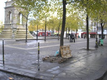 Paris, La Rue St. Denis, runs down the Eastern side of the square - a